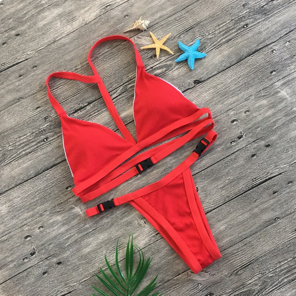 This solid-color buckle bikini set delivers a clean, modern look with a secure, flattering fit. The adjustable buckle detail adds structure and style, while the soft, stretch-blend fabric provides comfort for swimming, tanning, beach activities, and resort wear. Minimalist, versatile, and easy to pair with your summer essentials.
